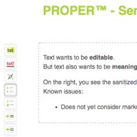 PROPER is a Semantic Texteditor based on HTML’s contenteditable attribute. It’s being developed in the context of Substance, a data driven document authoring engine. The goal is to output proper semantic HTML by restricting the set of possible tags. When pasting content, the markup is stripped. Incoming search terms for the article: contenteditable wysiwyg contenteditable [...]