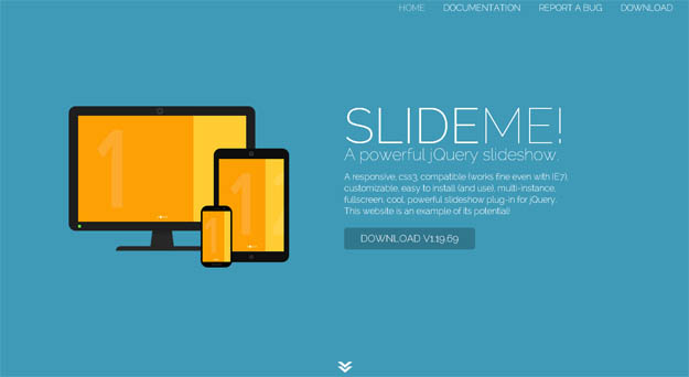 SlideMe! is CSS3 compatible jQuery slider plugin that supports limited and full screen views. Since it’s responsive, you can use it vertically or horizontally, and allows you to control CSS3 transitions, with pagination support.