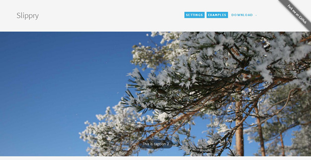 Slippry is a plugin that’s optimized for responsive layouts, which you can style with Sass or CSS. Its slider boasts of multiple transition options and can be set to auto-slide, display captions, with prev-next + bullet navigation controls.
