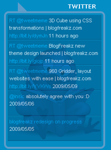 <?php twitter_messages('blogfreaakz', 5, true, true, true, true, true, true); ?>