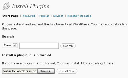 Or for wordpress 2.7, browse the plugin zip folder from wordpress admin panel, and activate the plugin.